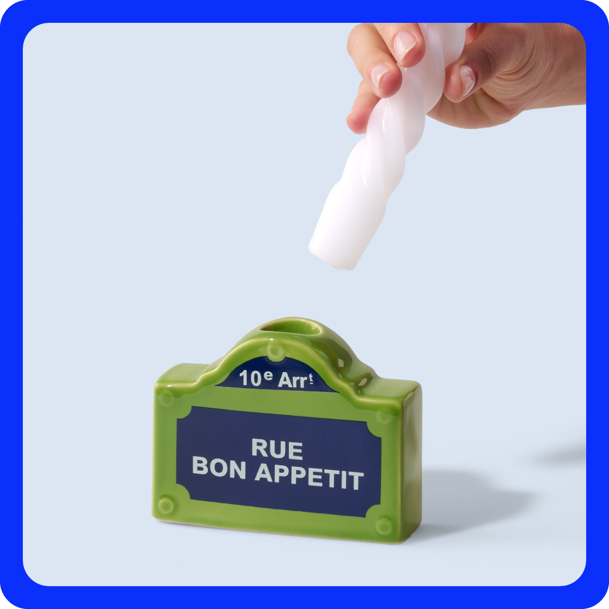 Sortez des sentiers battus avec ce bougeoir en forme de carte postale instantanée et originale de Paris ! Une reprise parfaite des célèbres plaques de la capitale et un nom de rue qui symbolise parfaitement l’esprit de cette collection décalée et tellement design aux multiples allusions gourmandes… Alors “bon appétit” !