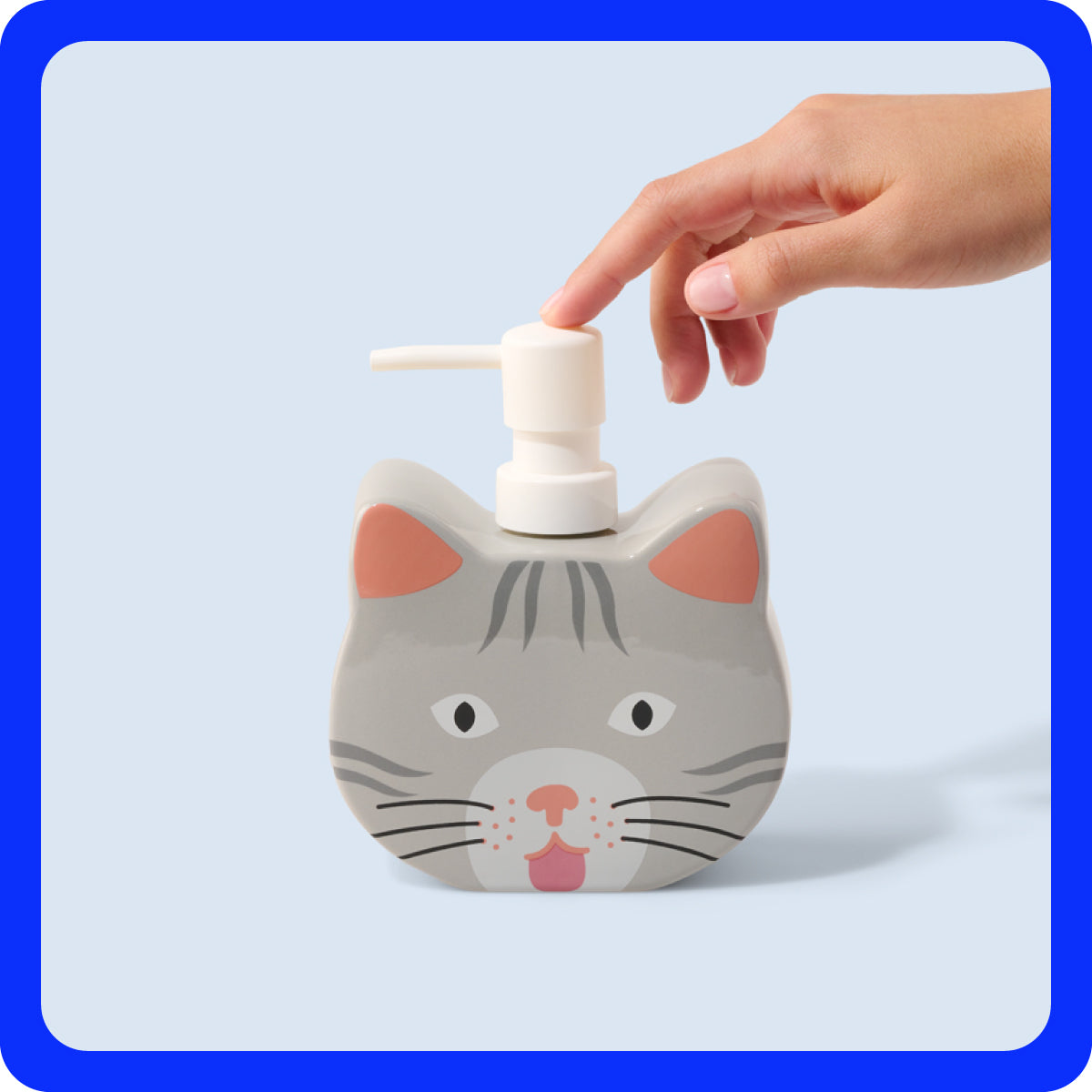 Pour les cat lovers et pas que… Voilà une belle collaboration à l’origine de ce distributeur de savon unique… Quand Fluid Market donne vie en 3D au fameux chat du talentueux illustrateur Thomas Gravereau décliné par lui sur ses emblématiques affiches et éventails. Vous allez craquer pour cet adorable portrait de votre compagnon préféré !